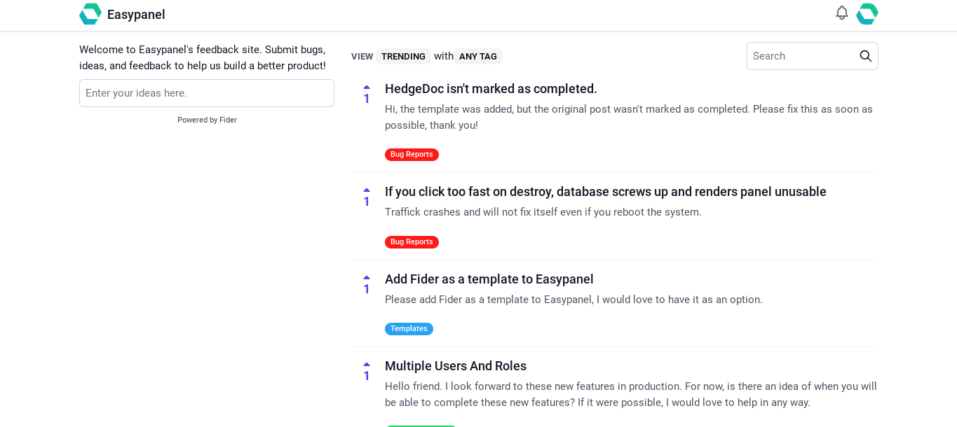 • Share Ideas, Vote and Discuss: Fider provides a feature-packed solution for all your needs. It allows you to share ideas, vote and discuss, giving voice to your community and getting valuable suggestions.