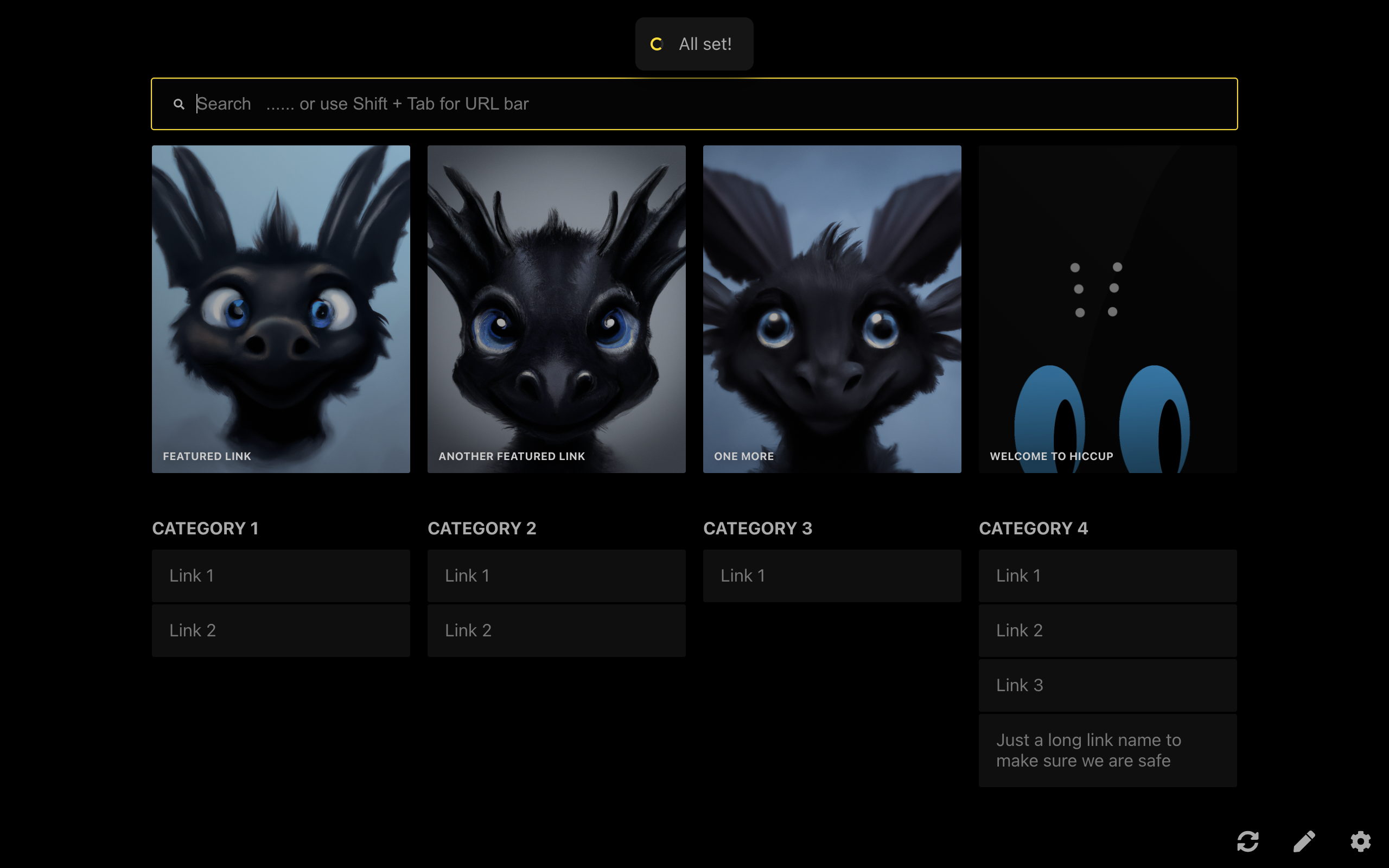 - Quick Access: Hiccup provides a static start page for your most important links, allowing you to access them quickly and efficiently.