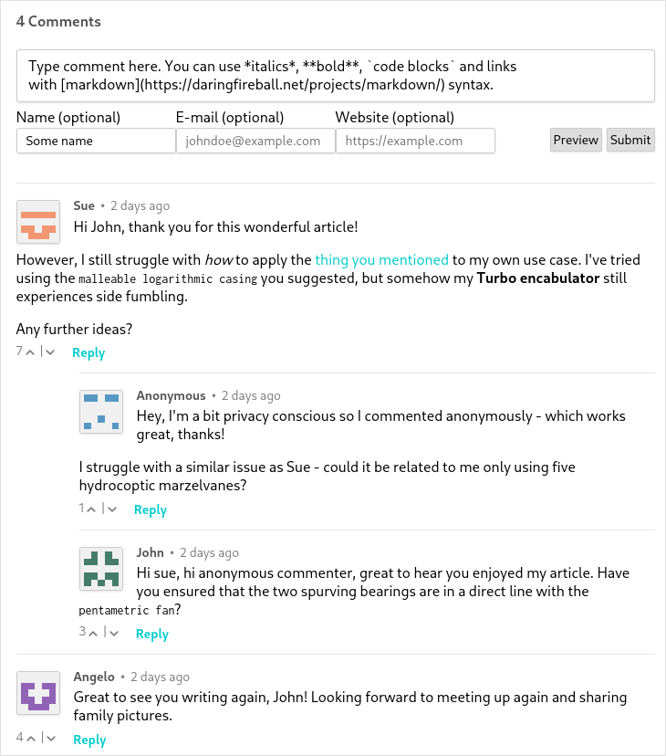 • Markdown Support: Isso supports comments written in Markdown, allowing users to format their comments in a way that is both easy to write and read.