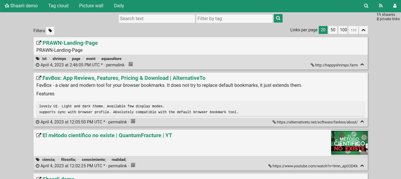 • Personalized Bookmarking: Shaarli offers a personal, minimalist, and super-fast bookmarking service. It allows you to share, comment, and save interesting links on your own server.